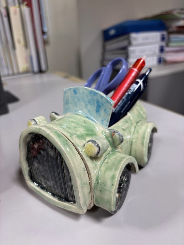 焼き物で車の形の小物入れを作ります。